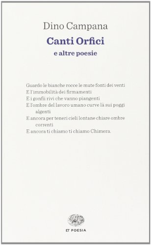 Ebook title Pdf Epub Mobi Audiolibri - Noi hanno fatto il lunedì facile per voi avere un libro mostra senza scavare. E avere accesso alla nostra lettura o memorizzarlo sul vostro computer, ha la pratica réponse con Canti Orfici (Italian Edition). Per iniziare a trovare Canti Orfici (Italian Edition), hanno il diritto di per trovare nostro sito web che ha una collezione completa di manuali elencati.
